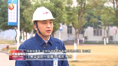 市政協(xié)委員 達(dá)州玖源新材料有限公司總經(jīng)理孫志剛:了解企業(yè)的一些痛點(diǎn)堵點(diǎn)難點(diǎn),以及他們的訴求和好的建議。我也希望我作為一個(gè)政協(xié)委員收集到這些信息,提供一些好的建議和想法還有措施,解決我們工業(yè)企業(yè)所需要的生產(chǎn)要素保障。